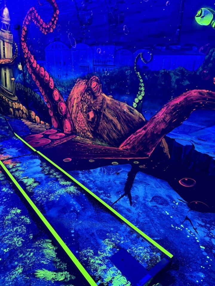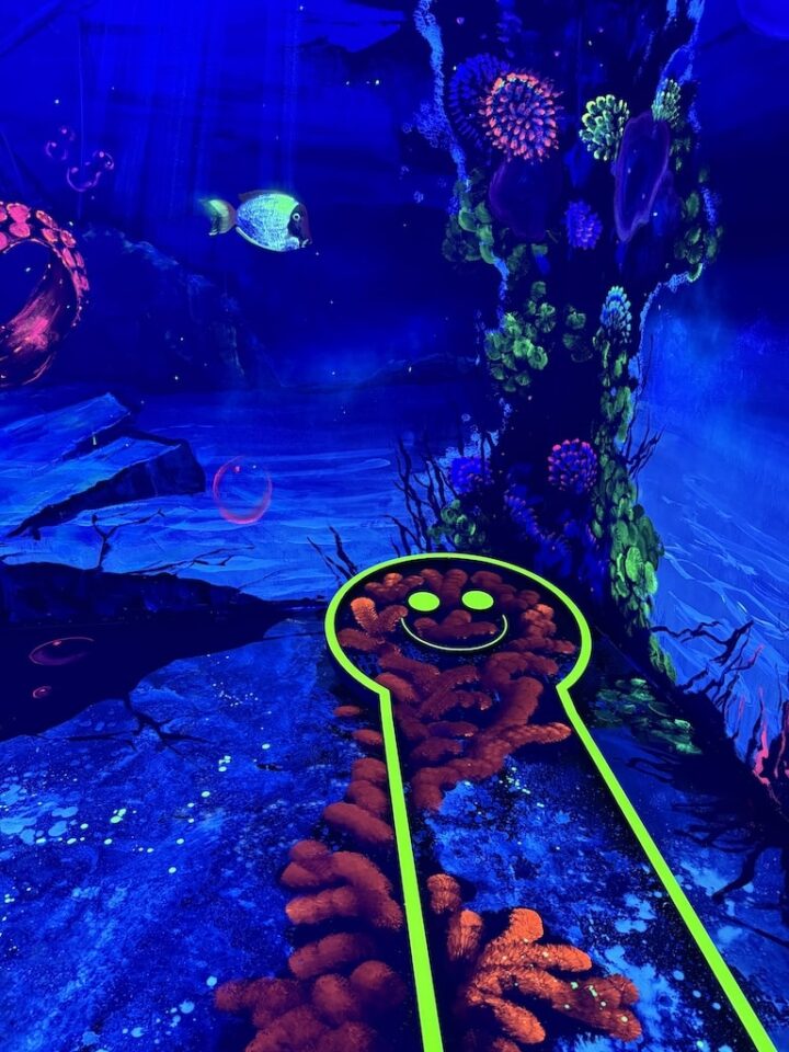 Schwarzlicht Golf inkl. 3D-Leihbrille: